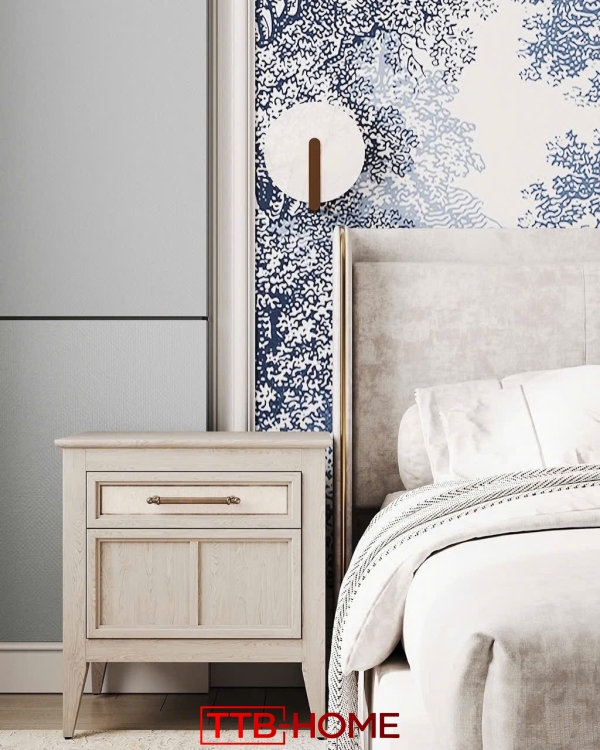 Bề mặt bọc nệm phẳng, tôn lên vẻ nhẹ nhàng nhưng vẫn cao cấp. Khi kết hợp cùng các tone màu trung tính như kem, xám, be, ghi hoặc nâu nhạt, TTB05 dễ dàng hòa hợp với hầu hết phong cách nội thất từ tối giản, hiện đại đến sang trọng.