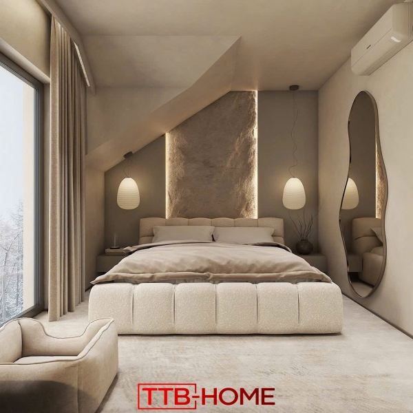 Giường ngủ bọc nệm TTB36 mang phong cách tối giản hiện đại, đặc trưng bởi các đường bo nhẹ nhàng, phần đầu giường bọc nệm dày dặn, tạo cảm giác sang trọng và êm ái. Kiểu dáng của TTB36 phù hợp với mọi xu hướng nội thất hiện nay, từ tông màu trung tính như xám, kem, nâu sữa cho đến các gam màu sáng hơn như trắng ngà.