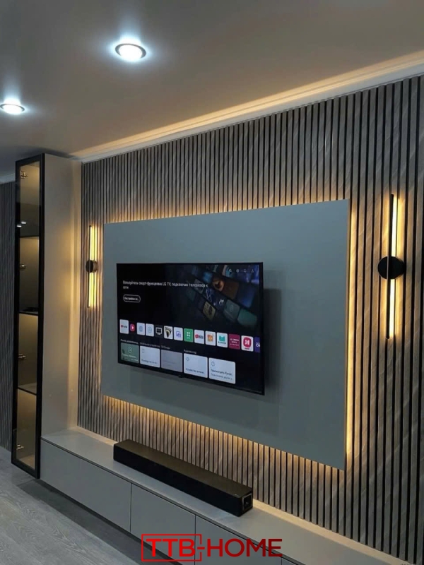 Thiết kế TVTTB02 hướng đến sự tinh gọn nhưng hiệu quả, giúp phòng khách thông thoáng hơn, đồng thời tăng tính thẩm mỹ tổng thể của không gian.