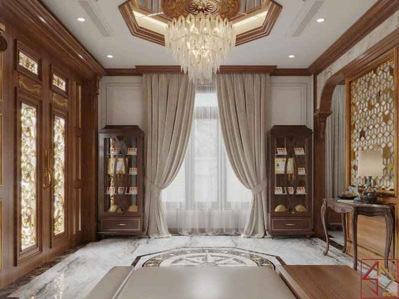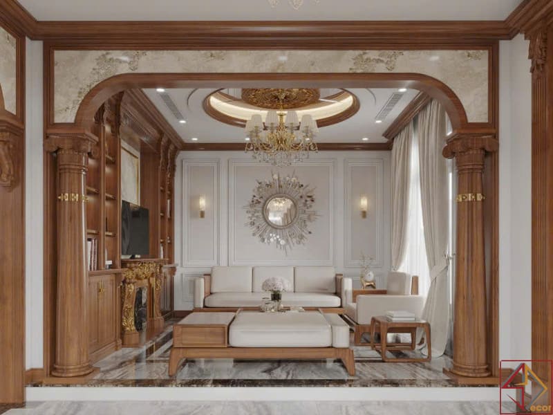 Phong cách thiết kế của căn biệt thự này là sự tôn vinh vẻ đẹp vĩnh cửu của cổ điển. Được thể hiện qua các chi tiết kiến trúc, nội thất đồ sộ.
