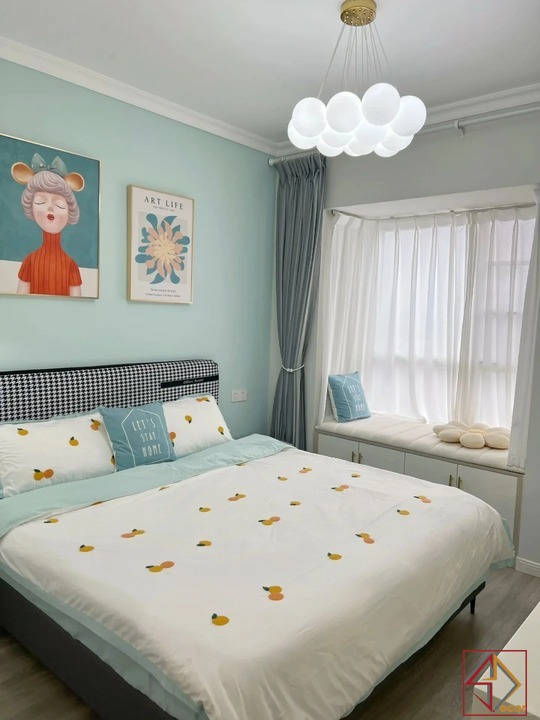 4. Thiết kế phòng ngủ chung cư cá tính, Phòng ngủ có cửa sổ bay)