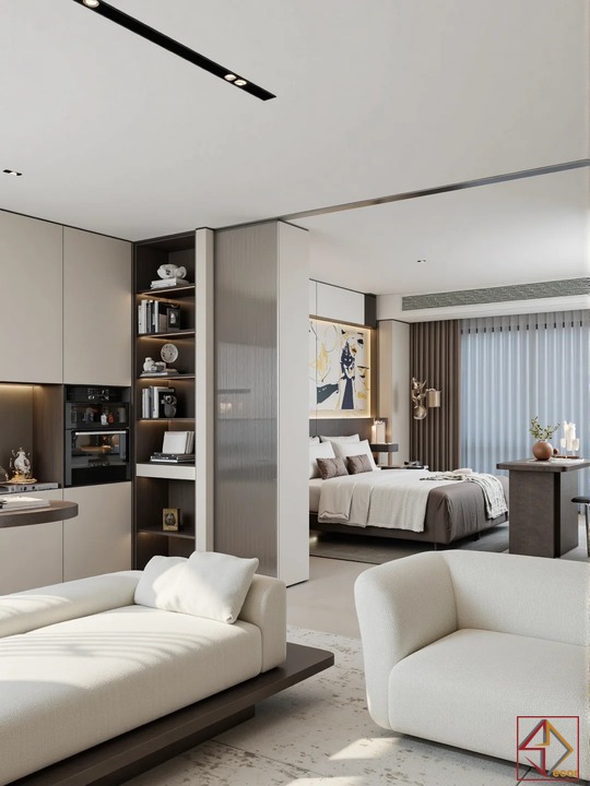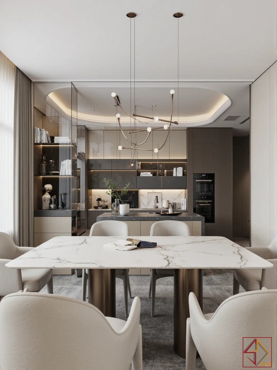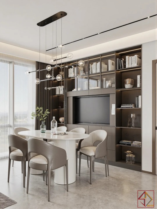 Là một công ty thiết kế nội thất chung cư uy tín, chúng tôi luôn đặt công năng lên hàng đầu. Không gian mở liên kết phòng khách và bếp giúp căn hộ thoáng đãng, rộng rãi hơn. Hệ tủ kệ được bố trí thông minh, tối đa hóa diện tích lưu trữ.