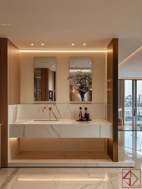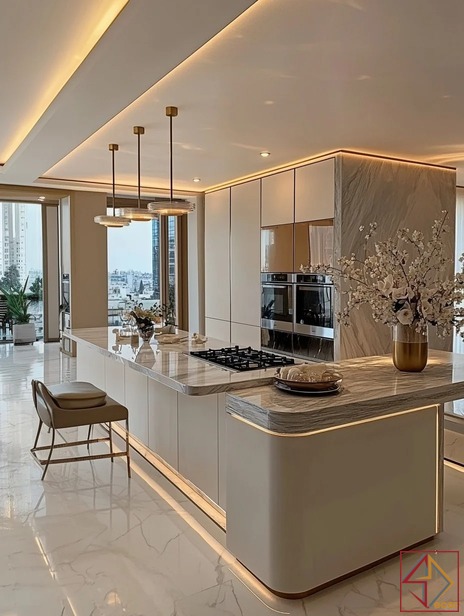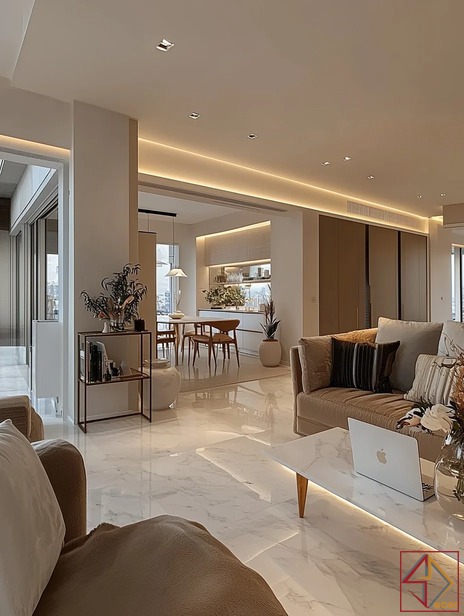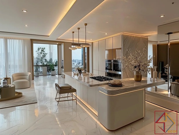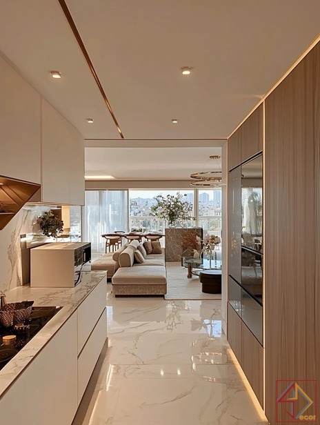 Với sự kết hợp tinh tế giữa các vật liệu cao cấp như đá marble, kim loại mạ vàng và gỗ tự nhiên, phong cách này mang đến vẻ đẹp lấp lánh và đẳng cấp. Không gian được tối ưu hóa về công năng, tạo cảm giác rộng rãi và thoáng đãng. Nội thất được thiết kế đơn giản nhưng đường nét tinh tế, thể hiện sự tinh tế và gu thẩm mỹ cao của gia chủ.