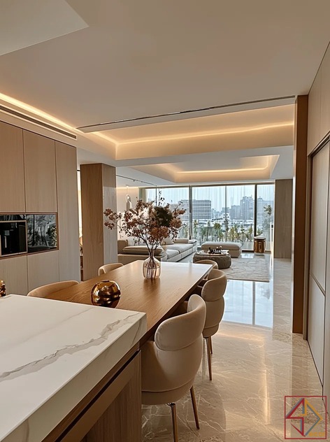 Là một công ty thiết kế nội thất chung cư uy tín, chúng tôi luôn đặt công năng lên hàng đầu. Không gian mở liên kết phòng khách và bếp giúp căn hộ thoáng đãng, rộng rãi hơn. Hệ tủ kệ được bố trí thông minh, tối đa hóa diện tích lưu trữ.