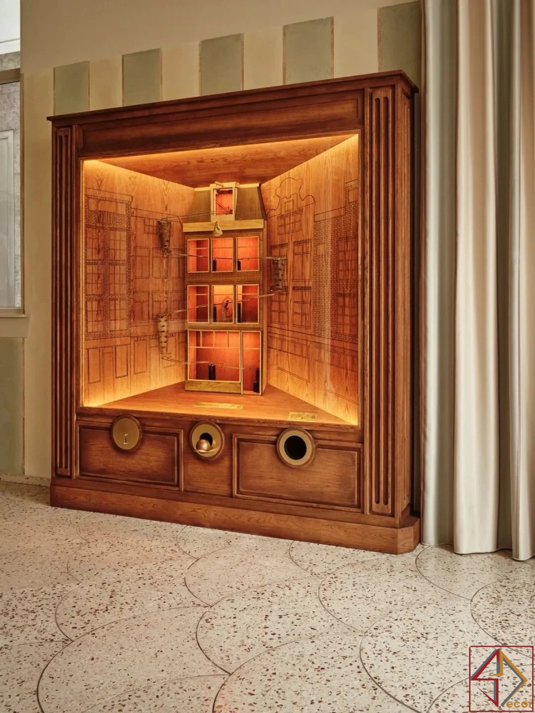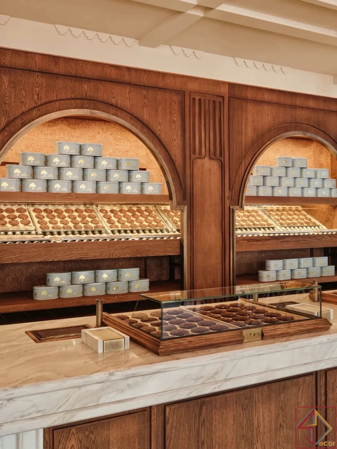 Chiếu Sáng Tích Hợp Trong Khu Trưng Bày: Ánh sáng ấm áp, tập trung bên trong các hốc trưng bày hình vòm chiếu sáng đẹp mắt các sản phẩm