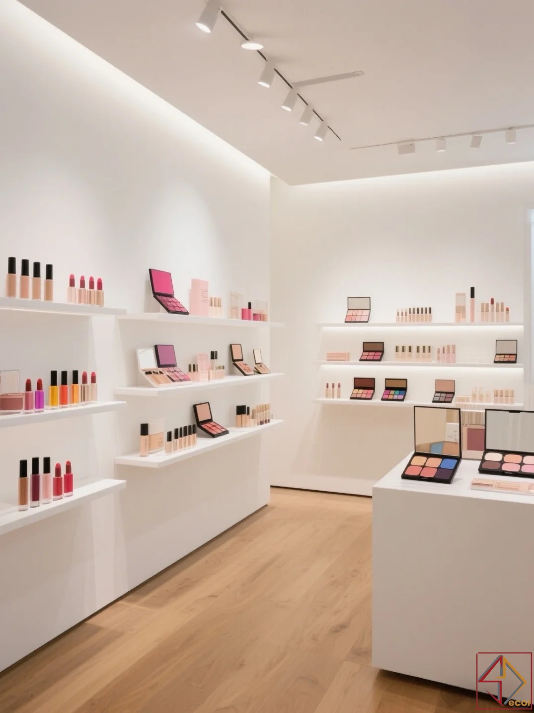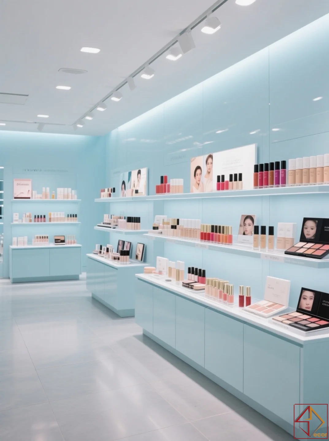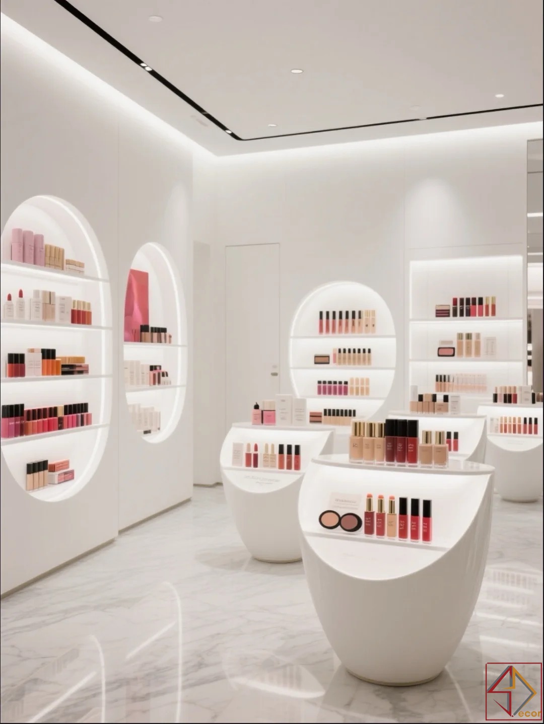 không chỉ mở rộng không gian mà còn tạo phông nền hoàn hảo để màu sắc của sản phẩm mỹ phẩm nổi bật.