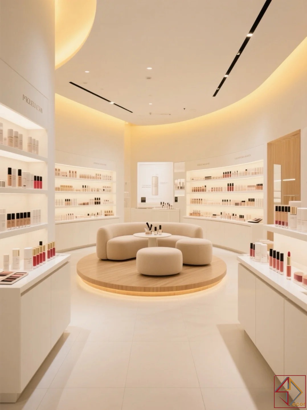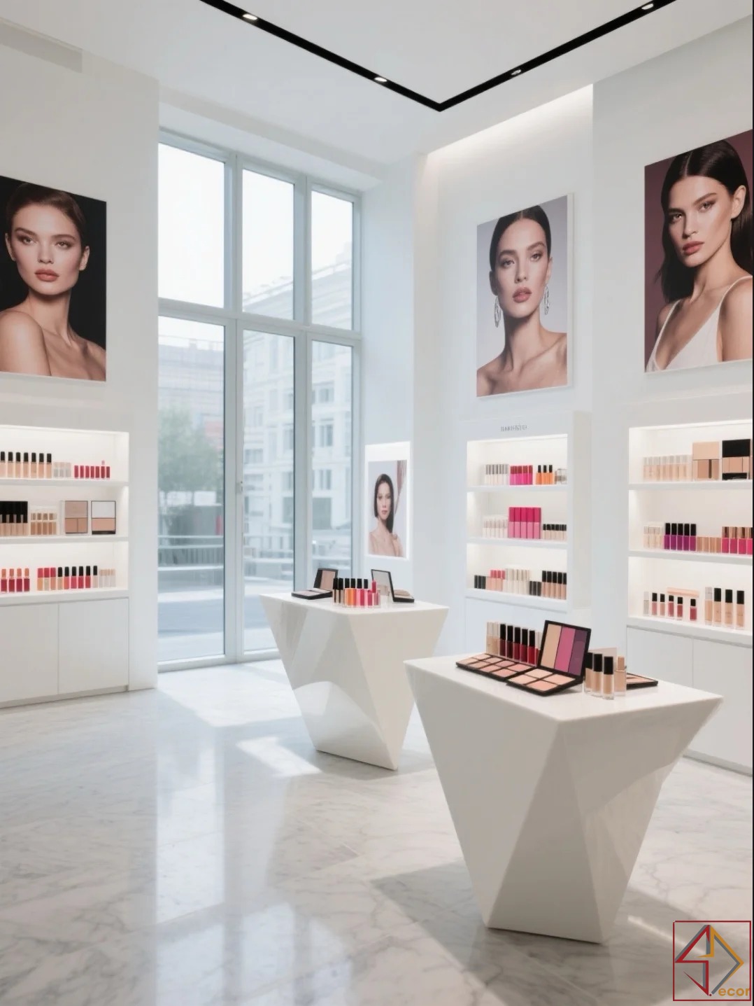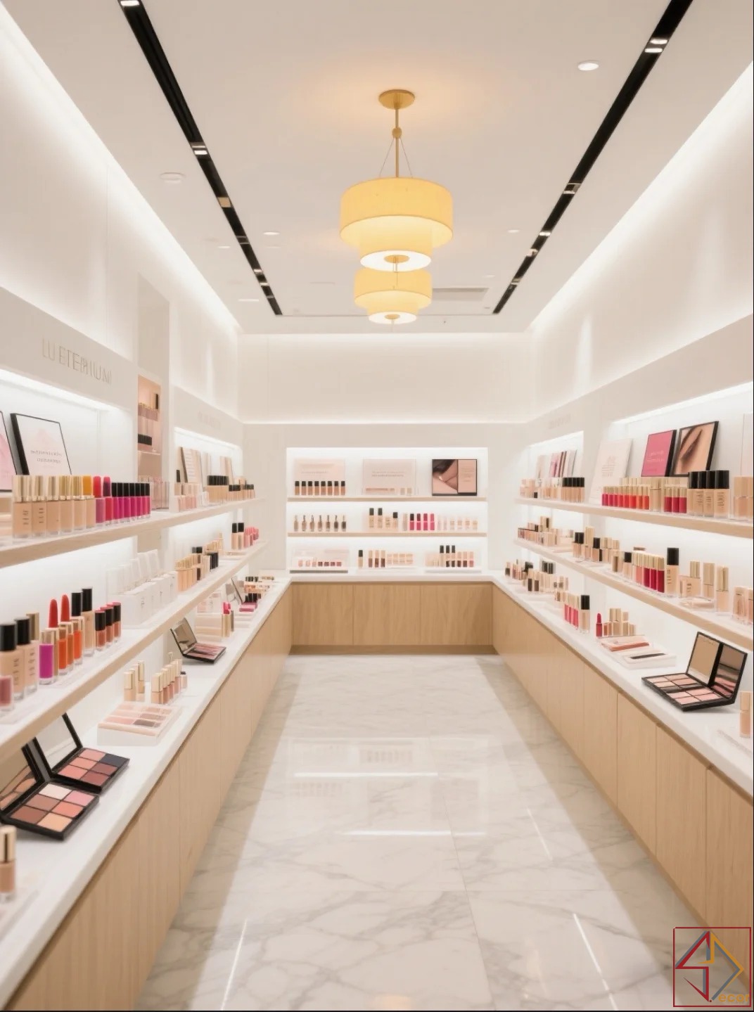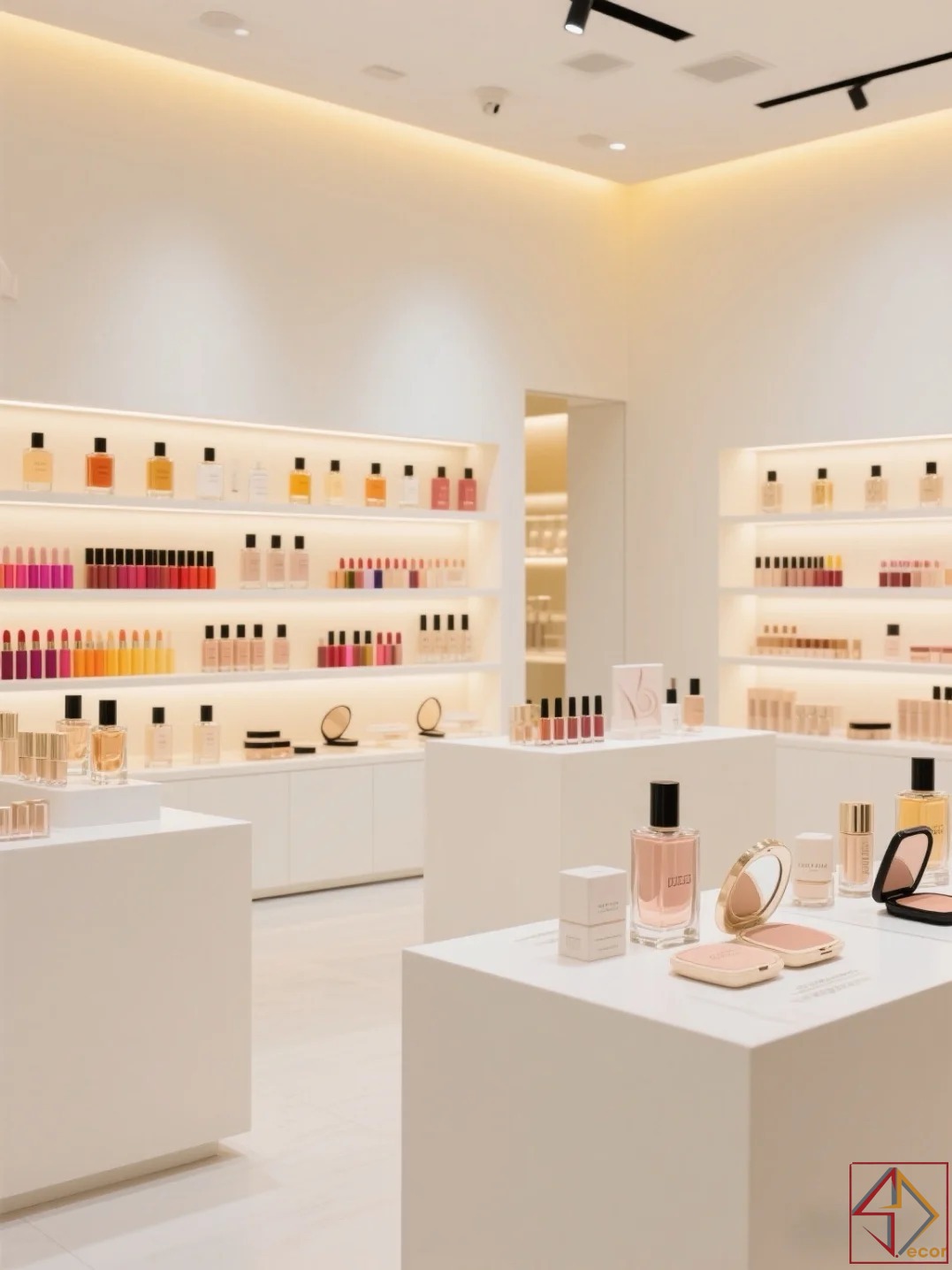 không chỉ mở rộng không gian mà còn tạo phông nền hoàn hảo để màu sắc của sản phẩm mỹ phẩm nổi bật.
