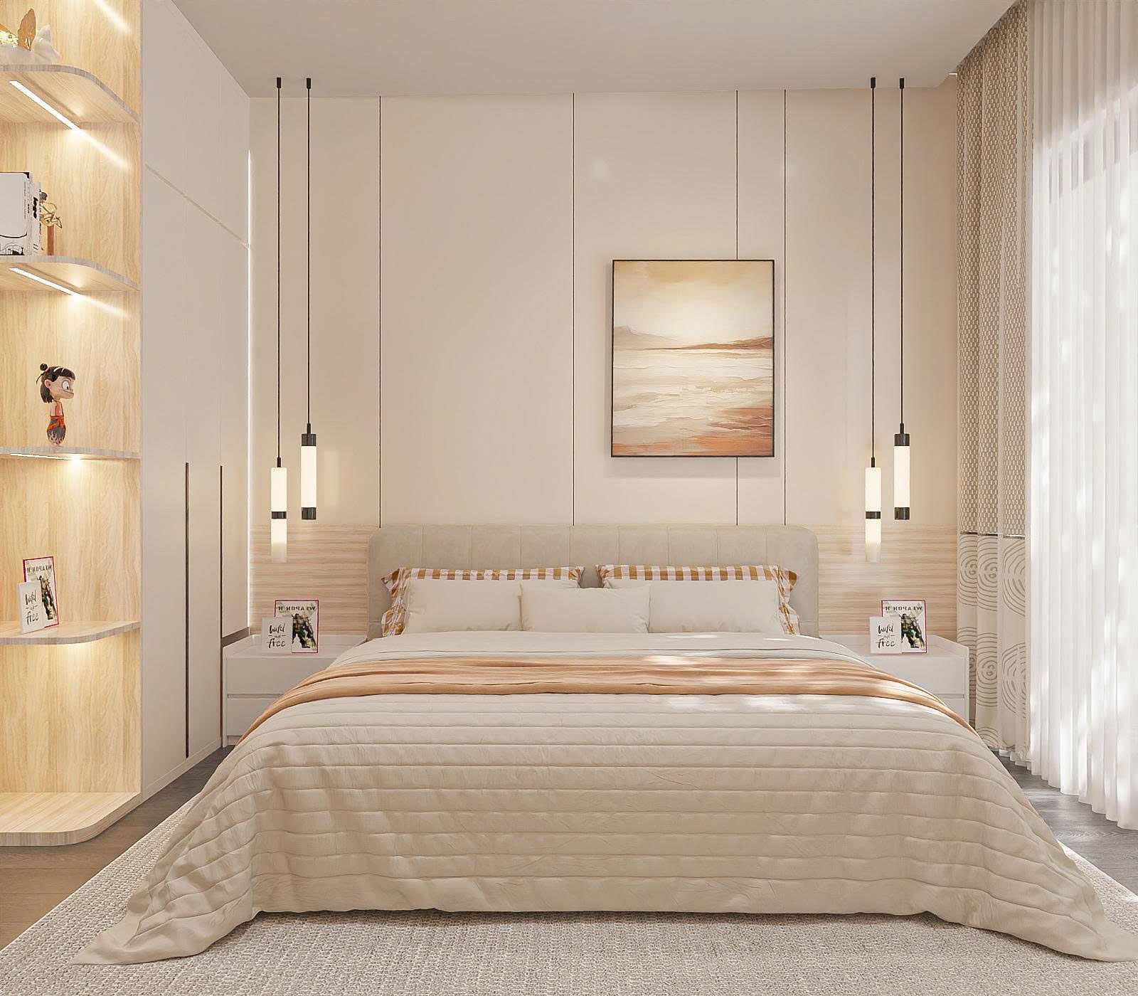 Với diện tích 80m2 chia cho 3 phòng ngủ, diện tích trung bình mỗi phòng sẽ khá khiêm tốn. Do đó, đội ngũ kiến trúc sư của TTB Home đã áp dụng 3 nguyên tắc vàng: